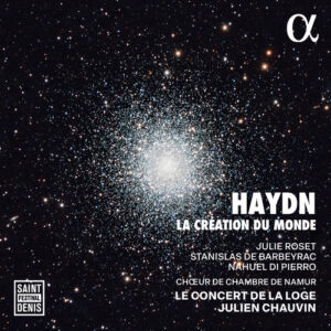 Genau das erlebt man bei den drei Solisten, die sich so richtig dem Text hingeben, so ein echtes Musikdrama schaffen, eben nicht mehr so eine steife Galerie an hübschen Illustrationen abgeben, sondern einen richtigen Schöpfungskrimi schaffen, befördert natürlich noch durch den Dirigenten Julien Chauvin. Der macht richtig flotte Tempi. Und das macht richtig Spaß zum Zuhören. Julien Chauvin am Pult von Le Concert de la Loge ist ein Glücksfall für diese Aufnahme. Er setzt nicht auf Glätte und pure (und wie woanders getragene) Eleganz, ist ein bisschen raubeiniger, mit dem Akzent auf der Dramatik, ohne aber zu übertreiben. Chauvin hat immer eine wunderbare Balance, schafft es in allen seinen Aufnahmen hervorragend, dieses Neue, Unverwechselbare und Sensationelle aus den Werken hervorzukehren. So auch als schönstes Beispiel hier, wo man im Beethovenschen Sinne die Schöpfung als eine Art Urknall erlebt, eben als Schöpfungsakt, aufregend und für mich aufregender als in der deutschsprachigen Originalfassung.