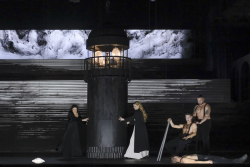 Der I. Teil von Weingartners Trilogie (Agamemnon) beginnt mit dem Fall Trojas. Der Wächter auf der Königsburg (Máté Sólyom-Nagy mit kräftigem Bariton) verkündet das Ende des trojanischen Kriegs und die Heimkehr von König Agamemnon (Kakhaber Shavidze mit königlich imposantem Bass und grandioser Textverständlichkeit). Agamemnons Gattin Klytaimnestra (mit voluminösem, dramatischem SopranIlia Papandreou) ist davon wenig begeistert: um ihre Tochter Iphigenie, die Agamemnon geopfert hatte, um am trojanischen Krieg teilnehmen zu können, zu rächen und ihren Geliebten Aigisthos (Siyabulela Ntlale mit hellem, ausgesprochen agilem Bariton mit fast tenoraler Attitüde) heiraten zu können, hatte Klytaimnestra Agamemnons Tod beschlossen. Ein Bote (Tristan Blanchet mit kräftigem, bestens geführtem Tenor) kündet den Einzug Agamemnons an. Kassandra (Laura Nielsen mit superben Piani, inniger Leidenschaft, intensiver Spannung und alles überragender Bühnenpräsenz), Tochter des Priamos und Seherin, die Agamemnon als Siegpreis von seine Heer geschenkt wurde, begleitet ihn. Kassandras Prophezeiung vom nahen Tod Agamemnons und ihrer selbst wird erst geglaubt, als die beiden von Klytaimnestra umgebracht wurden. Klytaimnestra erklärt ihre Morde öffentlich mit der Rache Iphigenies: Aigisthos und dessen Söldner unterbinden einen aufkeimenden Aufstand.