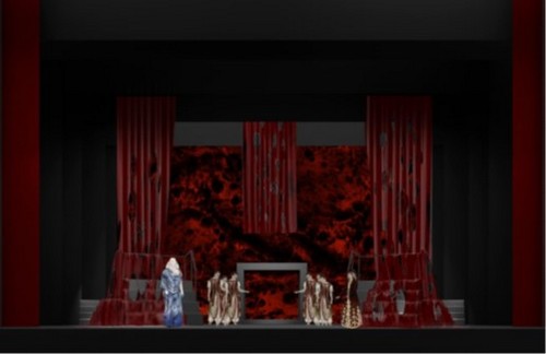 Bozzetto per il Primo Atto della prima rappresentazione moderna al Teatro Sociale di Como, realizzati dagli studenti del Biennio di Scenografia dell’Accademia di Belle Arti di Brera