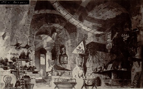 Bazzinis „Turanda“/ Laboratorio di Ormut destinato agli studii e alle evocazioni magiche bozzetto di Carlo Ferrario per Turanda_(1867) Archivio Storico Ricordi ICON012272